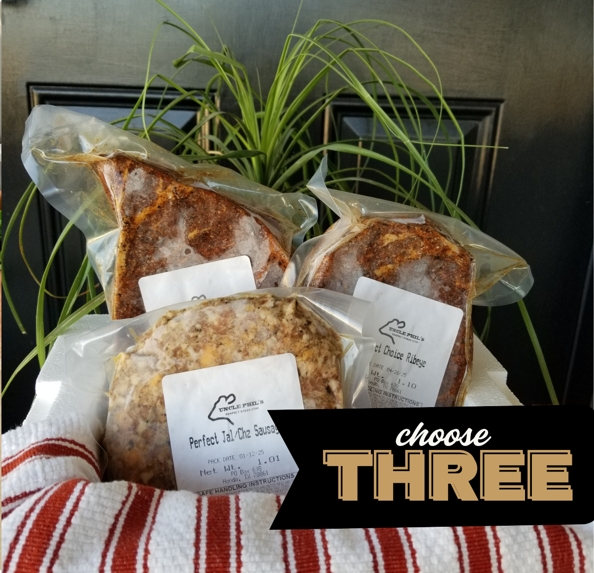 This sausage is a 50/50 combo of Angus Prime and Choice Steak Trimmings and Pork Butt, and is perfectly seasoned with Uncle Phil’s Rub. These sausage “steaks” are best cooked whole on the grill, just like you would with a ribeye.